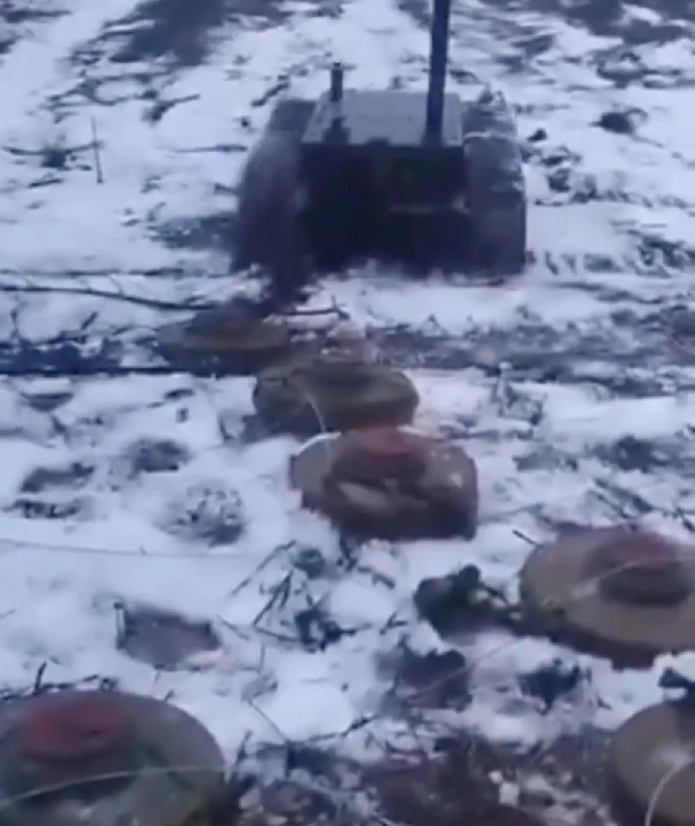 - Небольшие наземные дроны на гусеничном ходу, который укладывает советские мины ТМ-62.
