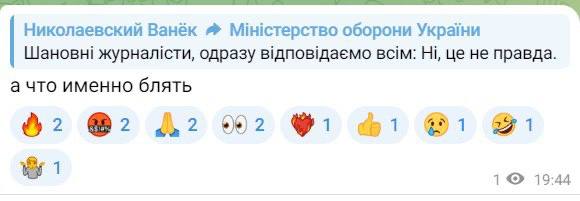 Министерство обороны Украины выступило с опровержением, однако не назвало, чего именно.