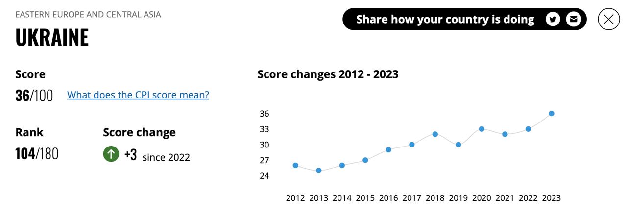 Это следует из обновленного индекса восприятия коррупции от Transparency International за 2023 год.