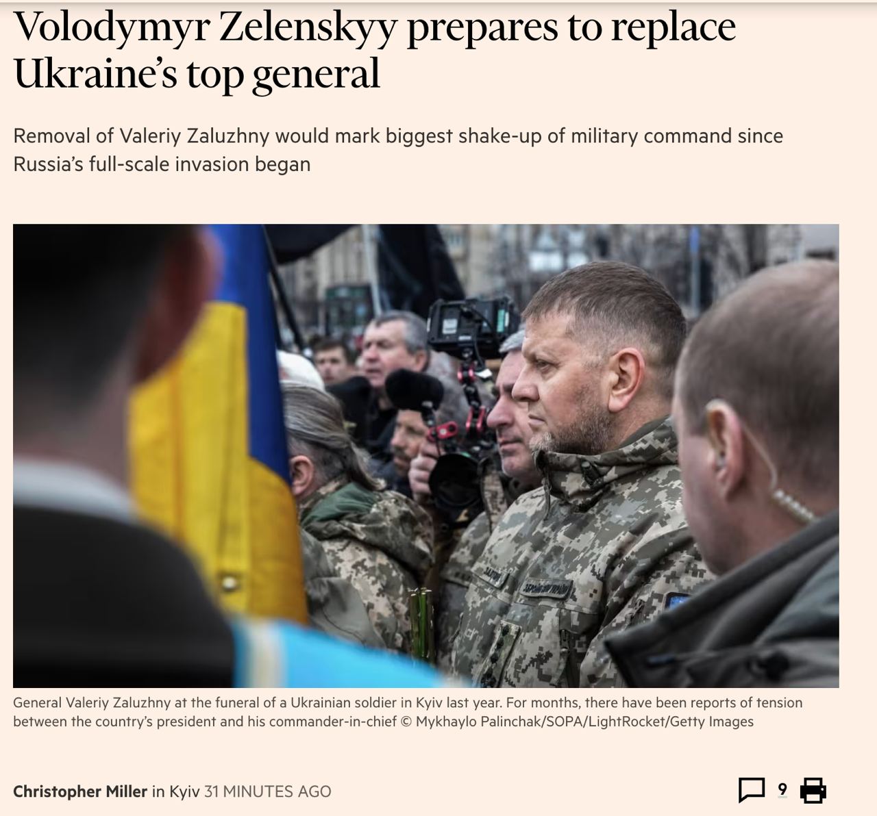 FT пишет, что замена Залужного может "нервировать западных партнеров" и произойдет в критический момент войны.