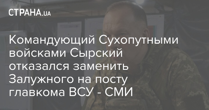 Командующий Сухопутными войсками Александр Сырский, вслед за главой ГУР Кириллом Будановым, отказался заменить Валерия Залужного на посту главкома ВСУ.