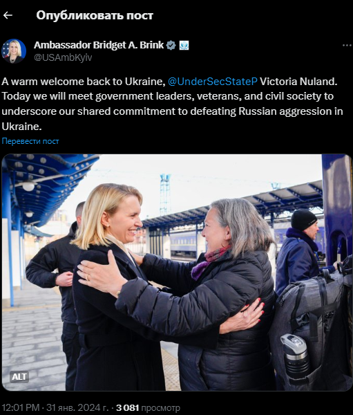 Об этом 31 января сообщает посол США в Украине Бриджит Бринк в соцсети Х.