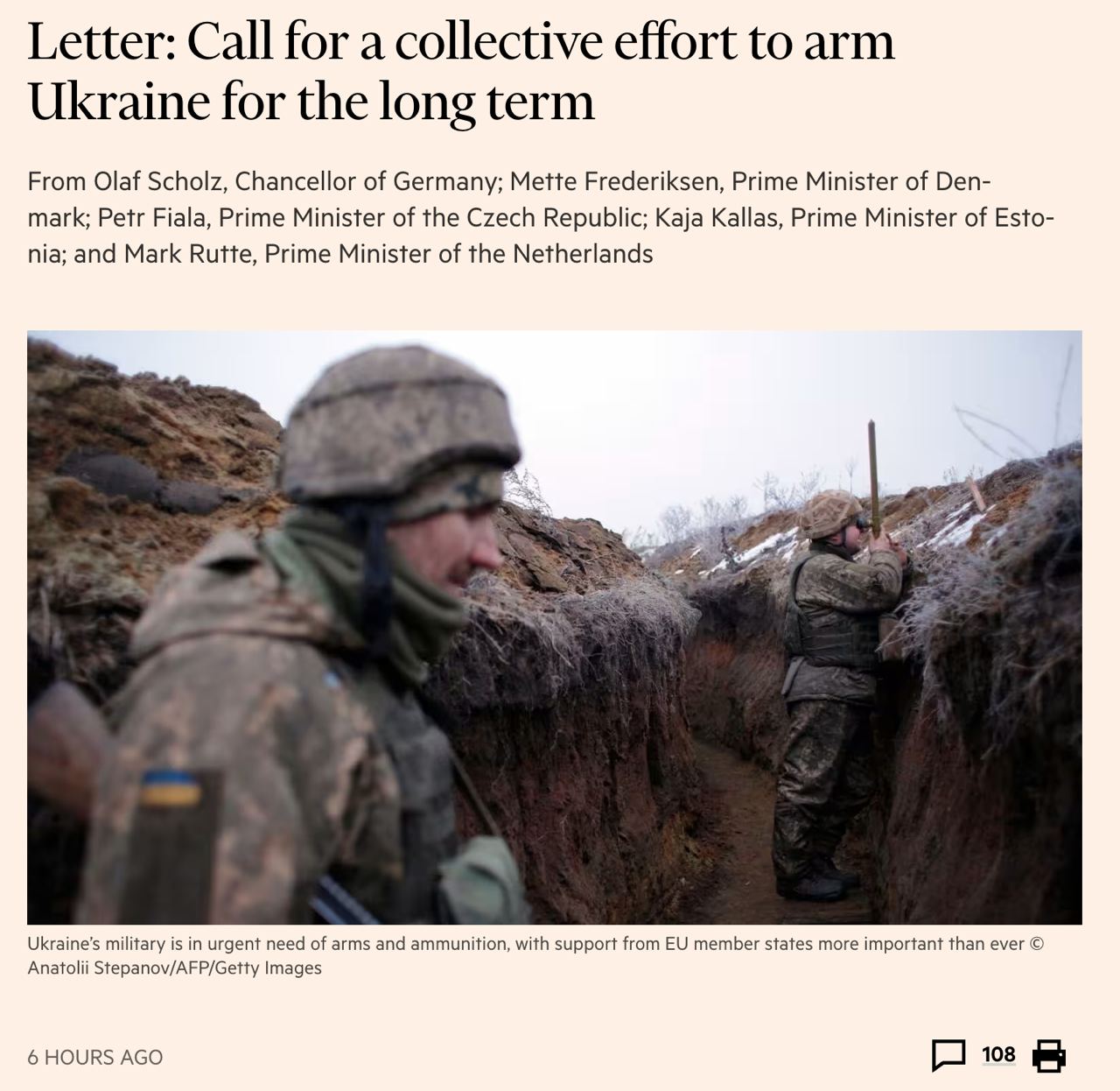 Лидеры Германии, Дании, Чехии, Эстонии и Нидерландов написали письмо с призывом усилить военные поставки Украине.