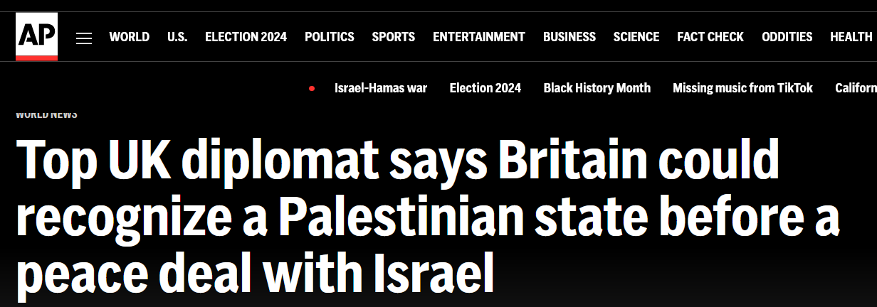 Лондон может признать палестинское государство сразу после объявления о прекращении огня, не дожидаясь официального окончания войны, которое может занять много лет.