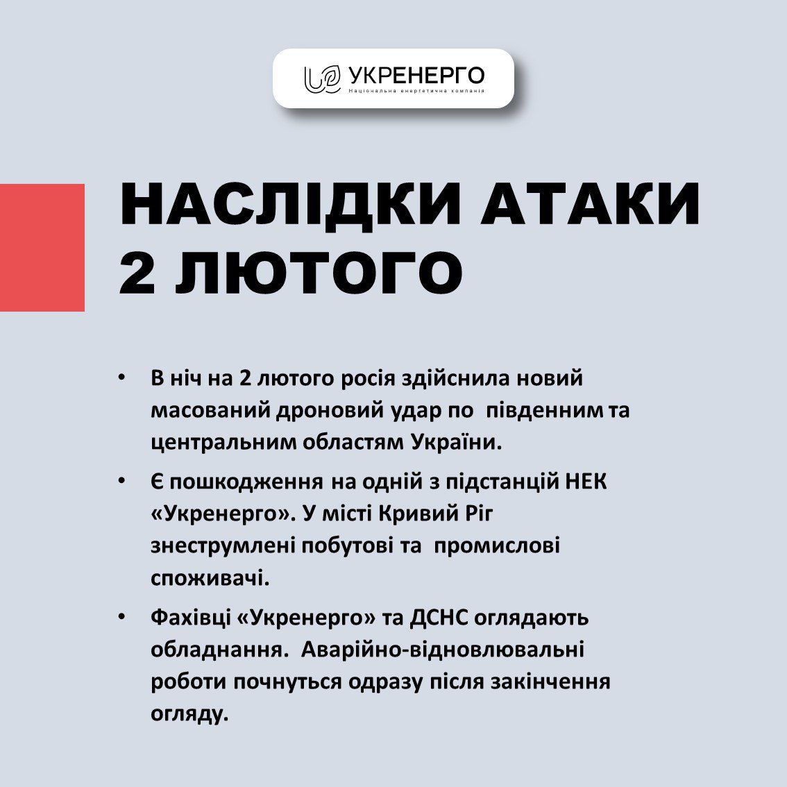 07.42 Причина отключения света в Кривом Роге - удар "Шахида" по подстанции, сообщает "Укрэнерго".