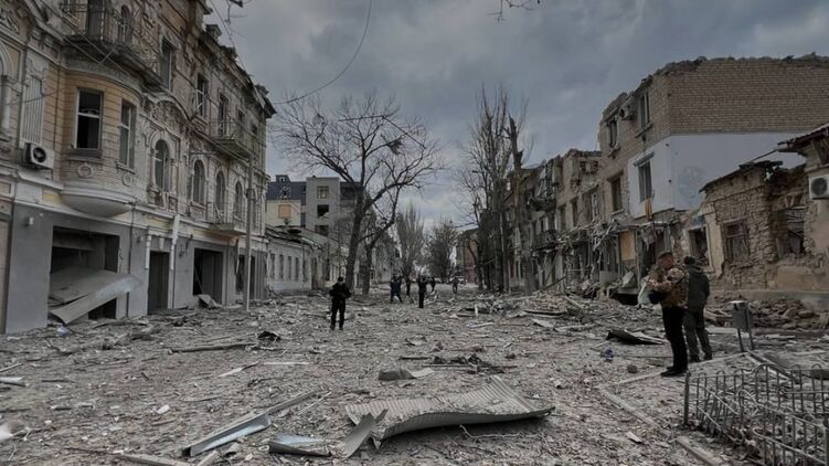 По центру Херсона россияне ударили авиабомбой. Есть раненые, в районе большие разрушения. Фото