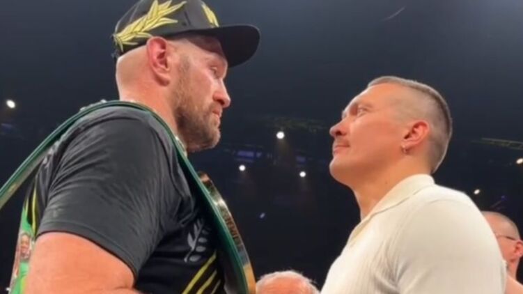 Тайсон Фьюри (слева) и Александр Усик. Скриншот