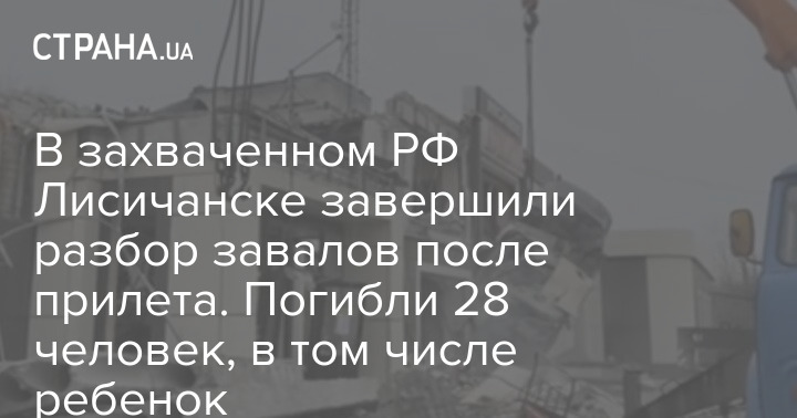 В воскресенье, 4 февраля, в городе Лисичанск на неподконтрольной Украине территории Луганской области завершился разбор завалов после прилета в пекарню. Погибли 28 человек: 18 мужчин, 9 женщин и один ребенок.
