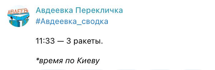 16:41 Ситуации в Авдеевке - скрины сообщений из местного паблика о прилётах ракет.