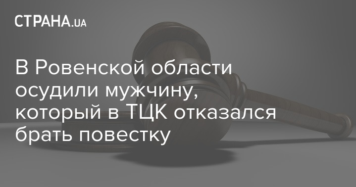В Ровенской области к двум годам лишения свободы с испытательным сроком приговорили мужчину, который в помещении ТЦК отказался брать повестку и подвергаться мобилизации.