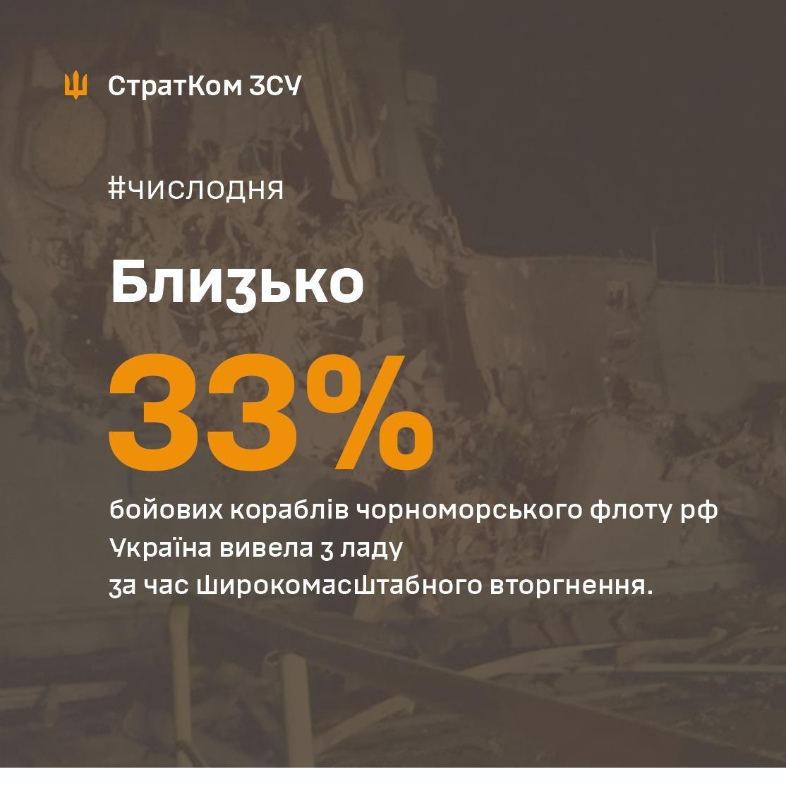 С начала полномасштабного вторжения РФ Украина вывела из строя около 33% боевых кораблей Черноморского флота России.