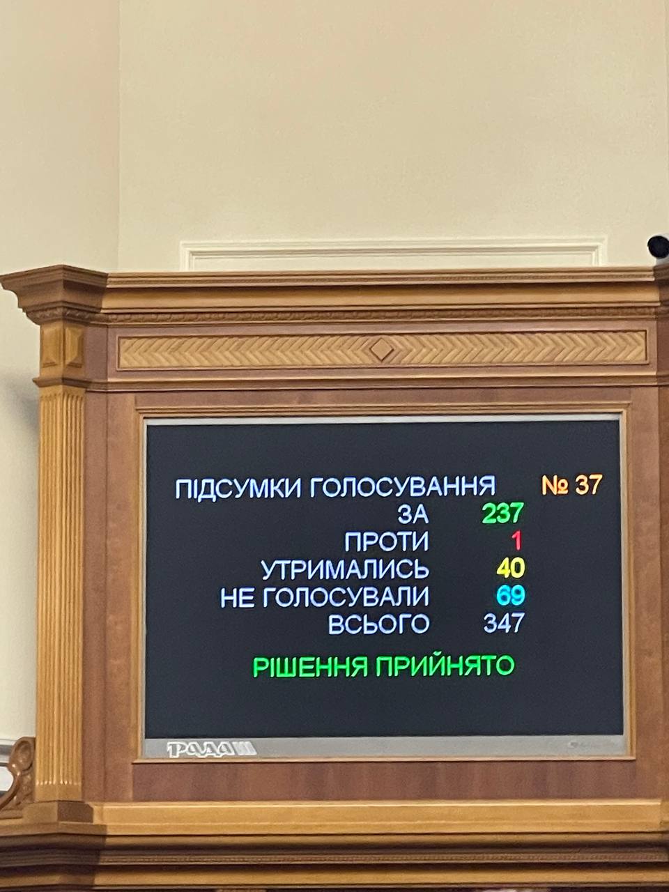 За проголосовало 237 депутатов.