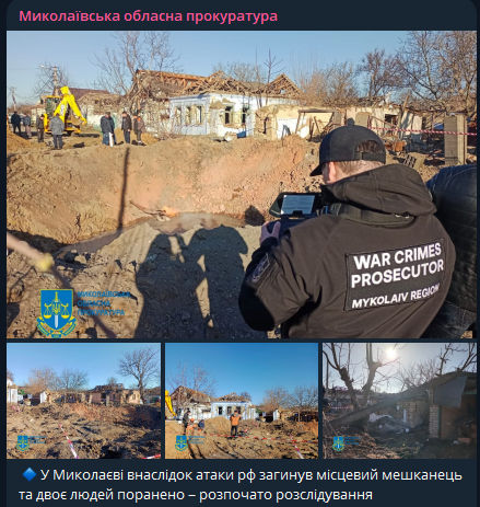 Фото последствий прилетов в Николаеве, где один человек погиб и двое ранены. Кадры публикует прокуратура.