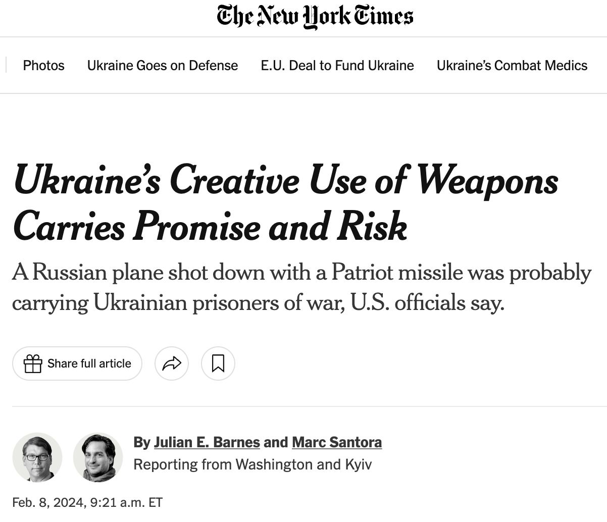 The New York Times пишет, что Ил-76 был сбит ВСУ из американского комплекса Patriot