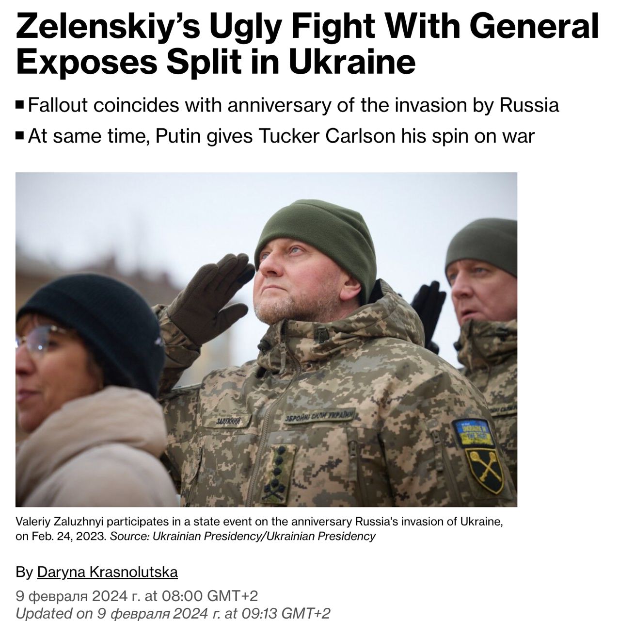 Западные СМИ продолжают обсуждать отставку главнокомандующего ВСУ Валерия Залужного. "Безобразная борьба Зеленского с генералом обнажает раскол в Украине", - с таким заголовком об увольнении военного вышел материал агентства Bloomberg.
