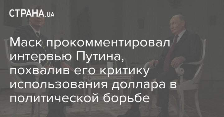 Маск прокомментировал интервью Путина, похвалив его критику использования доллара в политической борьбе