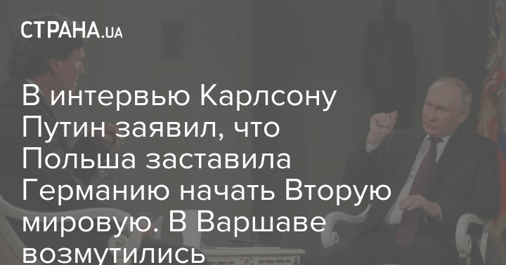 Президент РФ Владимир Путин в интервью американскому журналисту Такеру Карлсону заявил, что Польша в 1939 году "заставила" Германию начать войну.