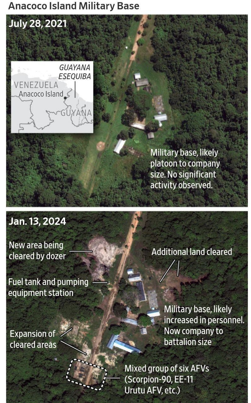 В публикации говорится, что армия Венесуэлы стягивает к границе региона Гайана-Эссекибо лёгкие танки, оснащённые ракетами патрульные катера и бронетранспортёры. Это происходит из-за продолжающегося спора о принадлежности региона Эссекибо.
