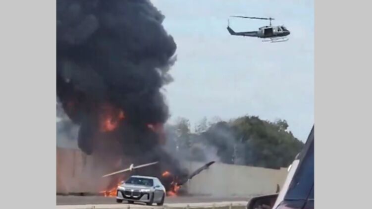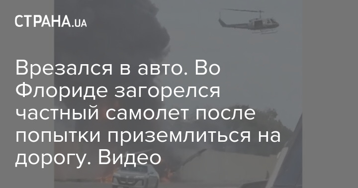 Во Флориде (США) частный самолёт пытался приземлиться на шоссе, врезался в машину и загорелся.