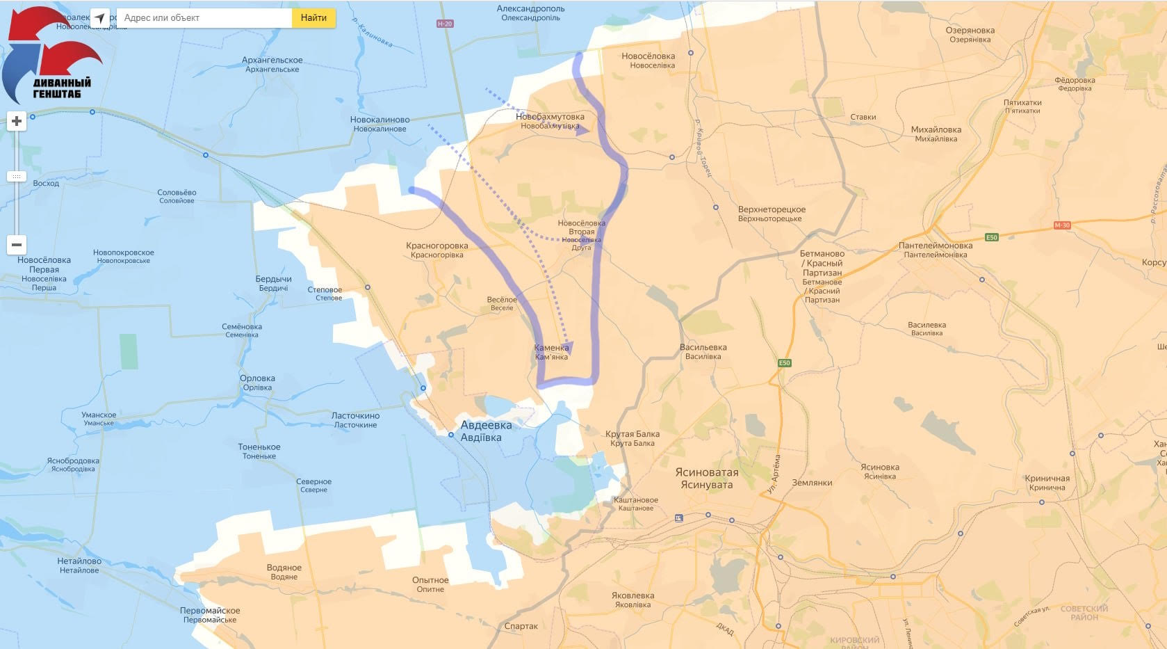 К слову, российские военные паблики пишут ещё и о третьем варианте действий ВСУ - нанесение удара в тыл наступающим с севера на Авдеевку российским войскам с целью рассечь российские войска к востоку от Красногоровки (удар через Новомихайловку и Каменку), выйти с севера на позиции ВСУ в южной части Авдеевки и взять таким образом в окружение группировку российских войск в районе Красногоровки и авдеевского карьера. Никаких подтверждений таким планам с украинской стороны нет. Если такой план в реальности существует, то он, безусловно, очень амбициозный, но для его успеха нужно куда больше сил, чем для осуществления первого варианта (срезание российских «выступов» в Авдеевке).