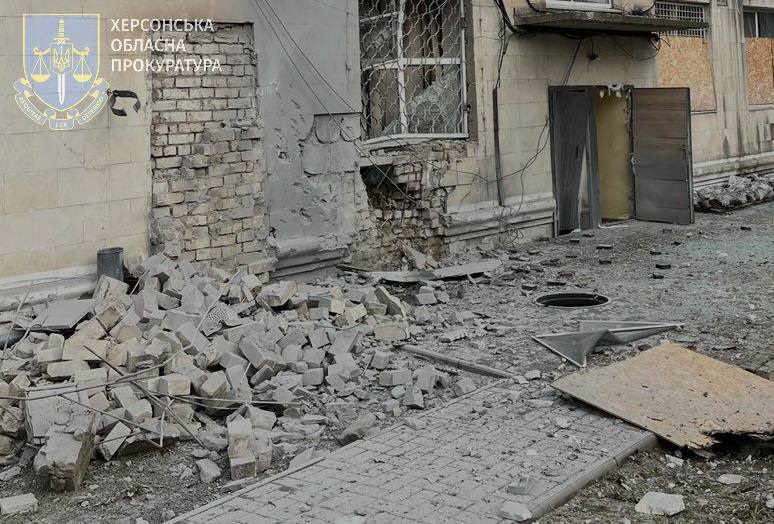 Последствия ночного обстрела Херсона. Фото: прокуратура