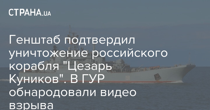 ГУР публикует видео удара по российскому десантному кораблю "Цезарь Куников".