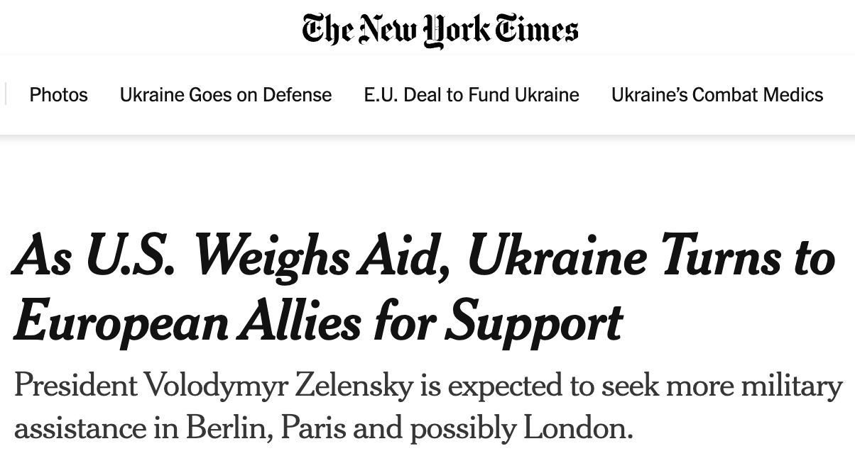 Владимир Зеленский планирует рабочую поездку в Европу для привлечения дополнительной помощи - NYT