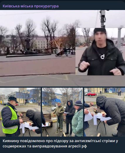 Киевлянину сообщили о подозрении за антисемитские стримы в соцсетях и оправдание агрессии РФ.