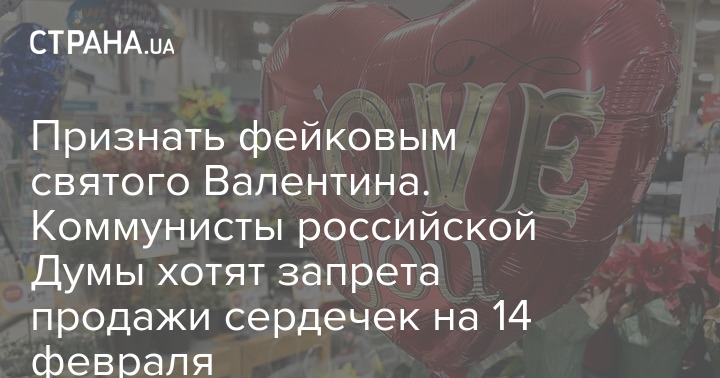 Представители партии "Коммунисты России" в Государственной думе РФ предложили признать святого Валентина фейковым персонажем. Лидер партии Сергей Малинкович призвал законодательно запретить День влюбленных, который отмечают в честь святого Валентина.