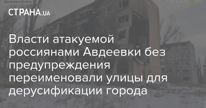 Власти атакуемой россиянами Авдеевки без предупреждения переименовали улицы для дерусификации города
