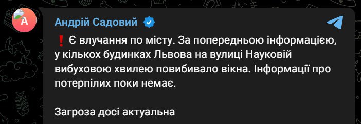 07.55 Во Львове мэр Садовой подтвердил прилет по объекту инфраструктуры.