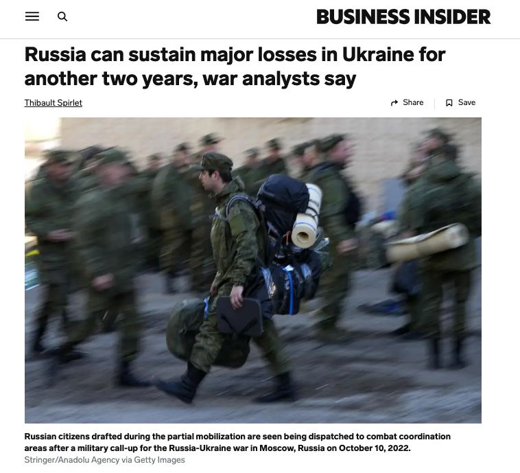 22.02 Россия еще два года будет в состоянии нести огромнейшие потери в живой силе и восполнять их без общей мобилизации.