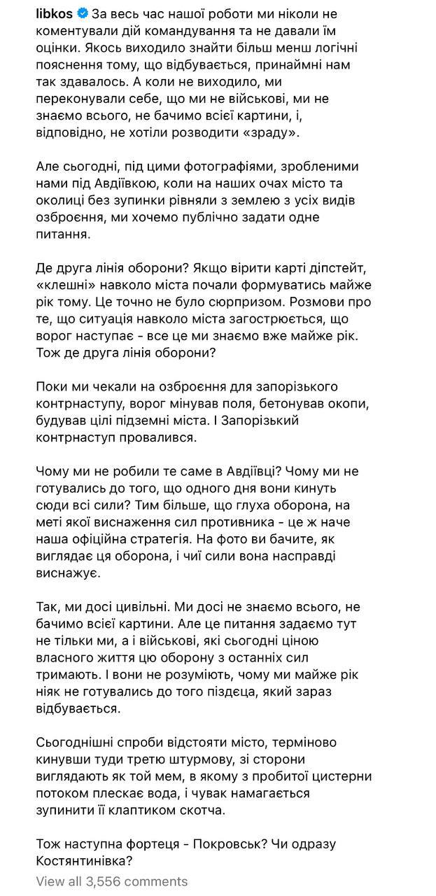 "Где вторая линия обороны? Если использовать карту дипстейт, "клешни" вокруг города начали формироваться почти год назад. Это точно не было сюрпризом. Так где вторая линия обороны?" - задаются вопросом Либеровы.