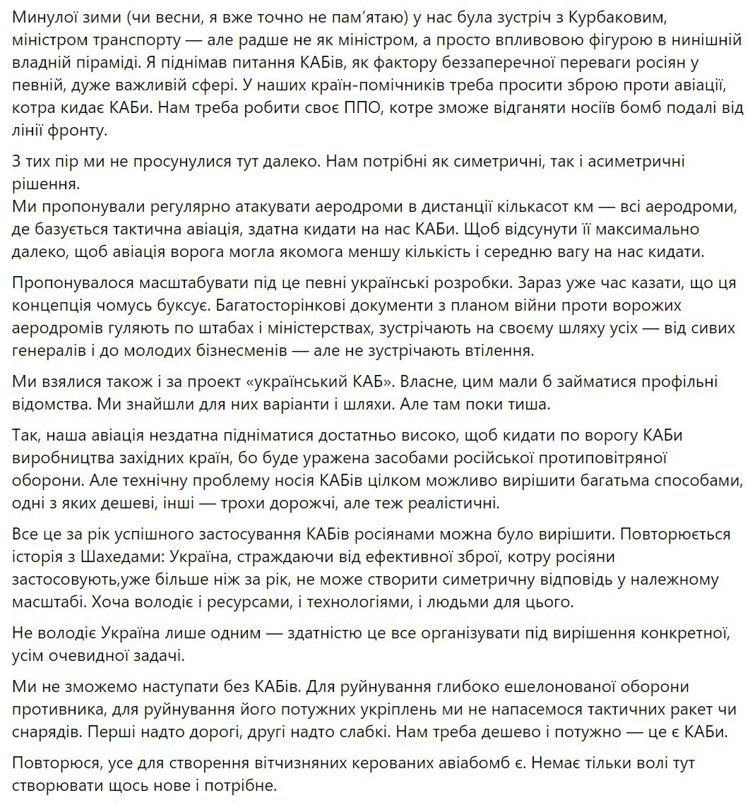 • нужно больше систем ПВО, чтоб сбивать российскую авиацию, сбрасывающую КАБы,