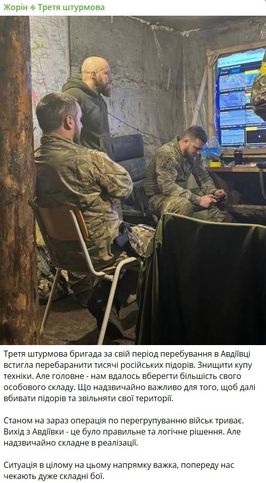 08:17 Третья штурмовая бригада ВСУ, которая находилась также и на Авдеевском коксохиме, тоже заявила об отходе.