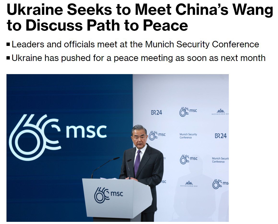 "Глава МИД Дмитрий Кулеба стремится встретиться с китайским коллегой Ван И на Мюнхенской конференции по безопасности, чтобы убедить Пекин принять участие во встрече на высоком уровне", - говорится в статье.