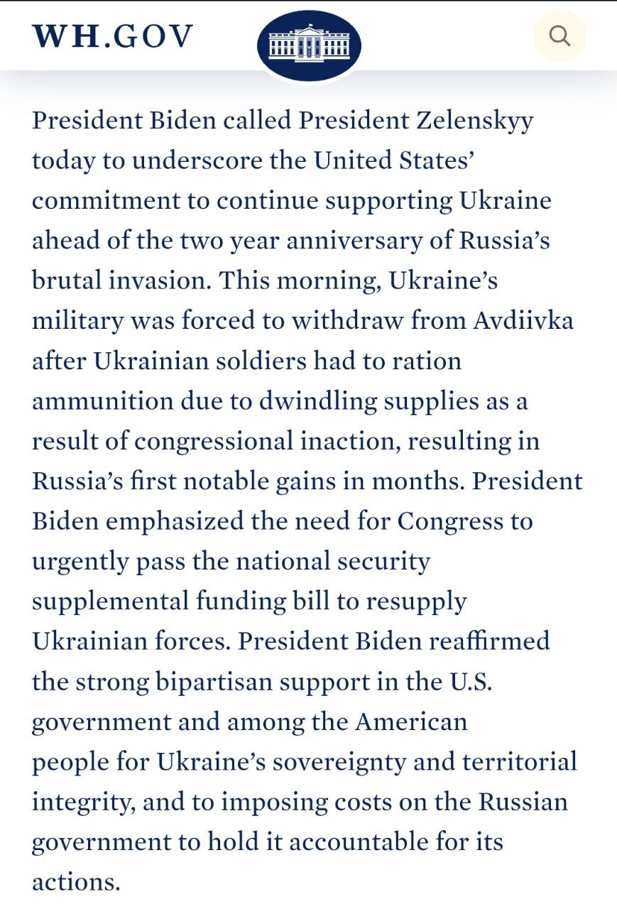 Президент США Джо Байден заявил, что ВСУ потеряли Авдеевку из-за нехватки боеприпасов. И обвинил в этом Конгресс США.