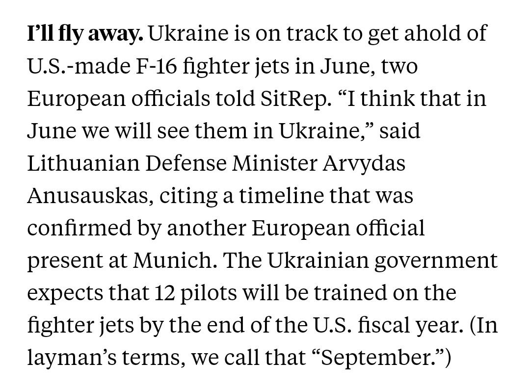 "Я думаю, что в июне мы увидим их в Украине", - подтвердил эту информацию министр обороны Литвы Арвидас Анушаускас, сославшись на график, который был подтвержден другим европейским чиновником, присутствовавшим на Мюнхенской конференции по безопасности.