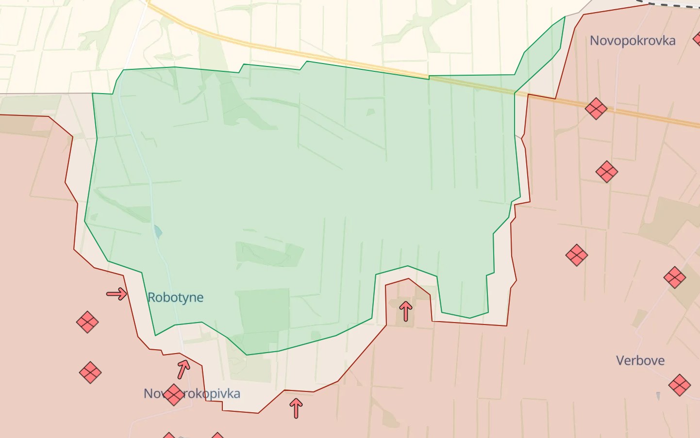 Там, начиная с субботы, идут российские атаки с южной стороны - как в сторону Работино, так и восточнее, с вероятной целью пробить коридор между Работино и Вербовым, разрезав удерживаемый ВСУ выступ на две части.