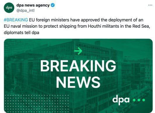 Европейский союз решил начать военную операцию против йеменских хуситов для обеспечения безопасного судоходства в Красном море.