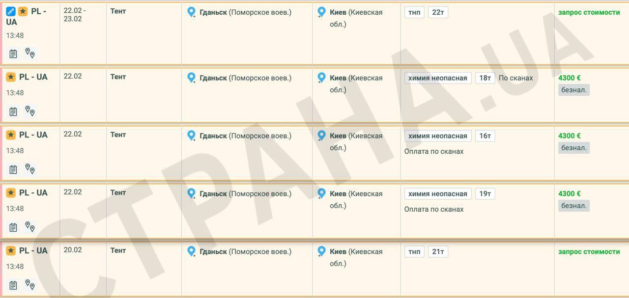 Из-за блокады начали расти цены на перевозки. Если две недели назад за доставку из Гданьска в Киев платили 1500-2000 тысячи евро, то сейчас цены достигают более 4000 тысяч евро и продолжают расти.