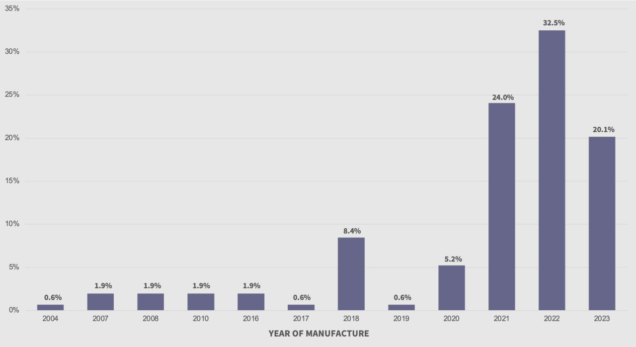 Половина компонентов были произведены с 2021 по 2023 год. Из чего следует вывод, что ракета совсем новая и была собрана после марта 2023 года.
