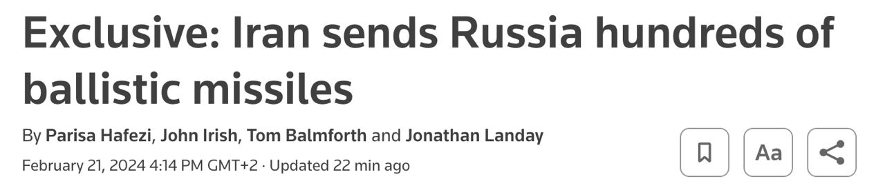 Иран передал России около 400 баллистических ракет класса "земля-земля". Об этом сообщает Reuters со ссылкой на источники.
