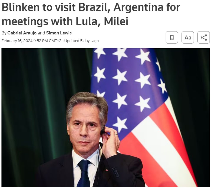 Госсекретарь Блинкен заявил президенту Бразилии Луле, что не видит условий для переговоров по Украине