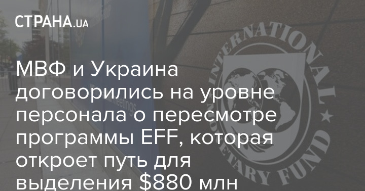 МВФ и Украина договорились на уровне персонала о пересмотре программы EFF, которая откроет путь для выделения $880 млн