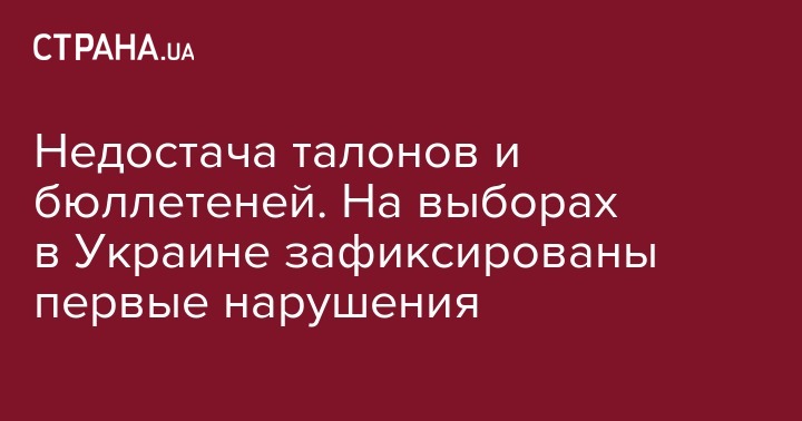 Нехватку 50 бюллетеней обнаружили наблюдатели на участке в Кировоградской области, а голосование на одном из участков в Полтавской области начали только в 8.15 из-за недостатка контрольных талонов. Об этом сообщает Опора.