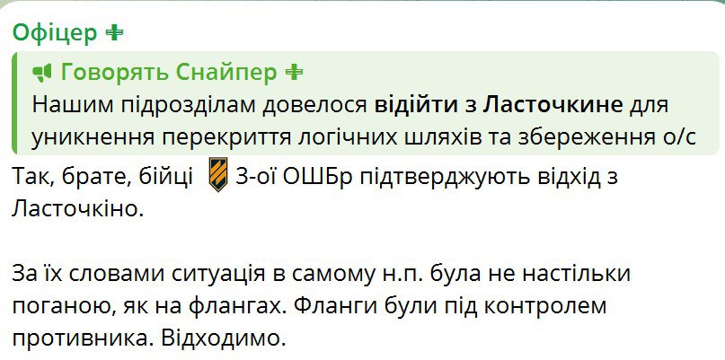 По их словам, под угрозой оказались фланги ВСУ и маршруты снабжения, поэтому было принято решение об отходе.