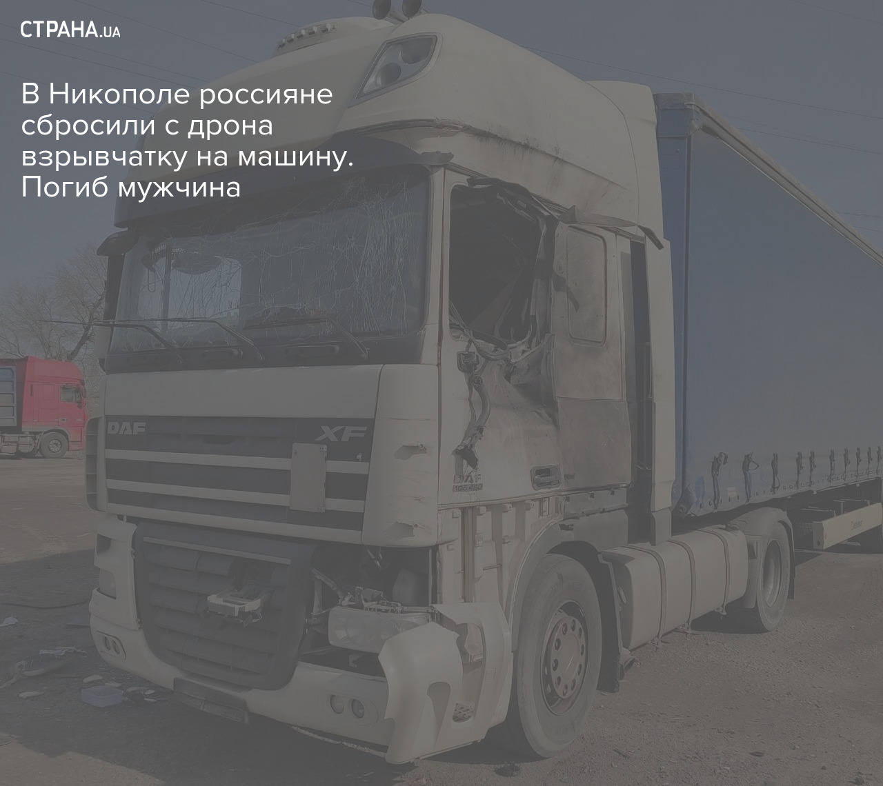 Сегодня в Никополе россияне сбросили с дрона взрывчатку на авто. Погиб мужчина. Об этом сообщает глава Днепропетровской ОВА Сергей Лысак.