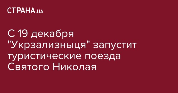 С 19 декабря "Укрзализныця" запустит туристические поезда Святого Николая