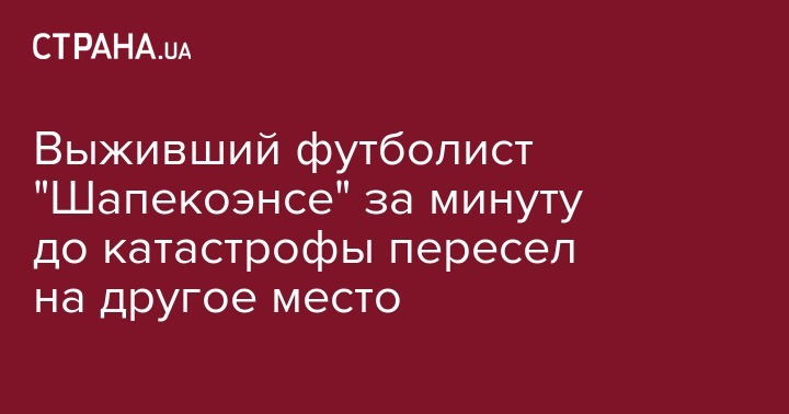 Выживший в авиакатастрофе футболист "Шапекоэнсе" рассказал, что пересел на другое место за минуту до падения. Об этом сообщает BBC.